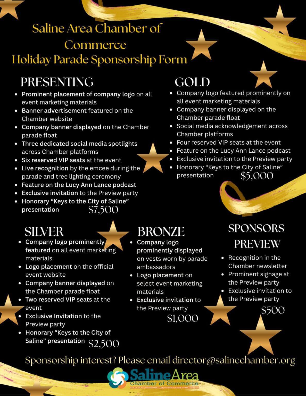 Looking for more information about the Saline Holiday Parade and Tree Lighting? Contact the Saline Area Chamber of commerce: