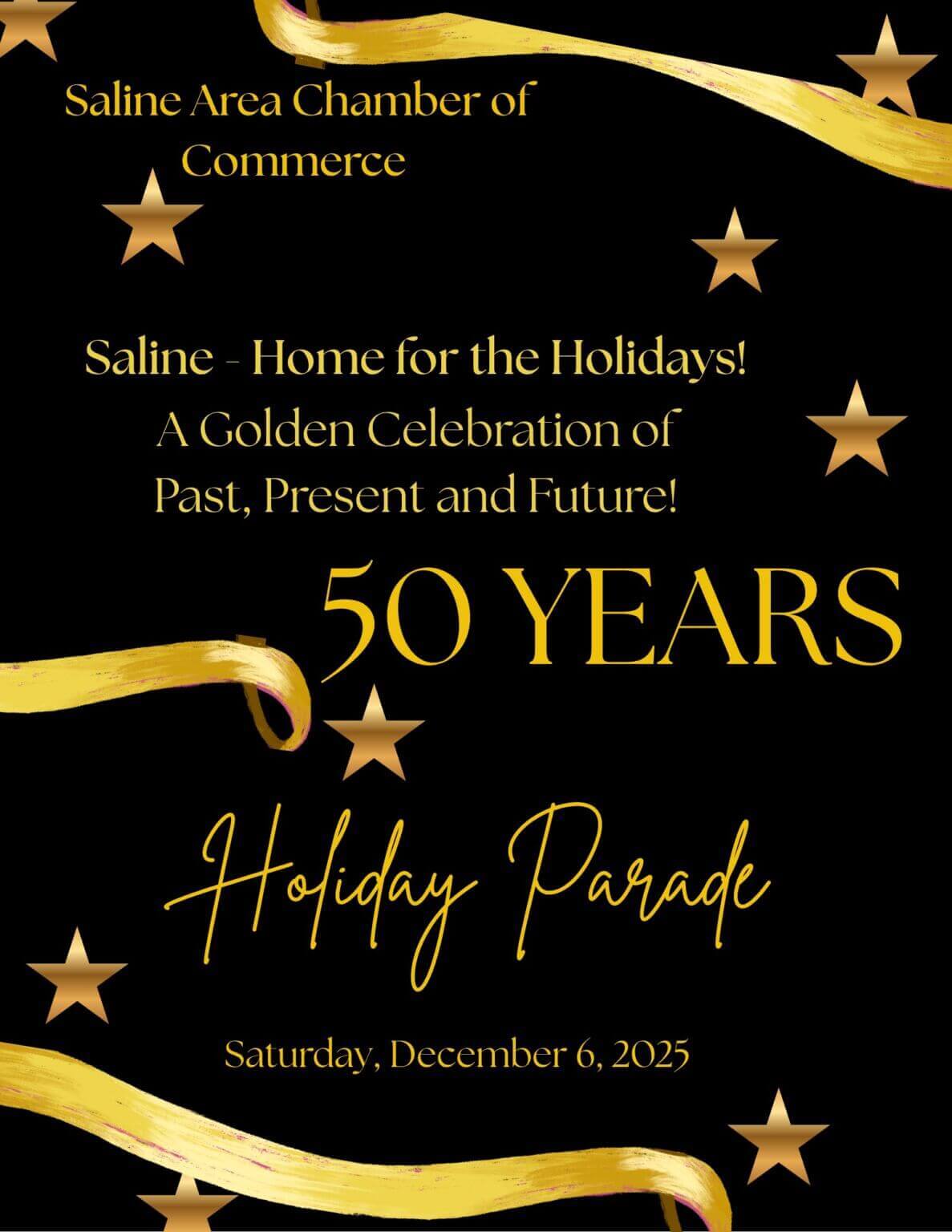 The Saline Area Chamber of Commerce was thrilled to celebrate the community at our 50th Annual Holiday Parade and Tree Lighting Ceremony! This year’s theme, “Saline – Home for the Holidays! A Golden Celebration of Past, Present, and Future,” honored cherished traditions while looking forward to a bright future.